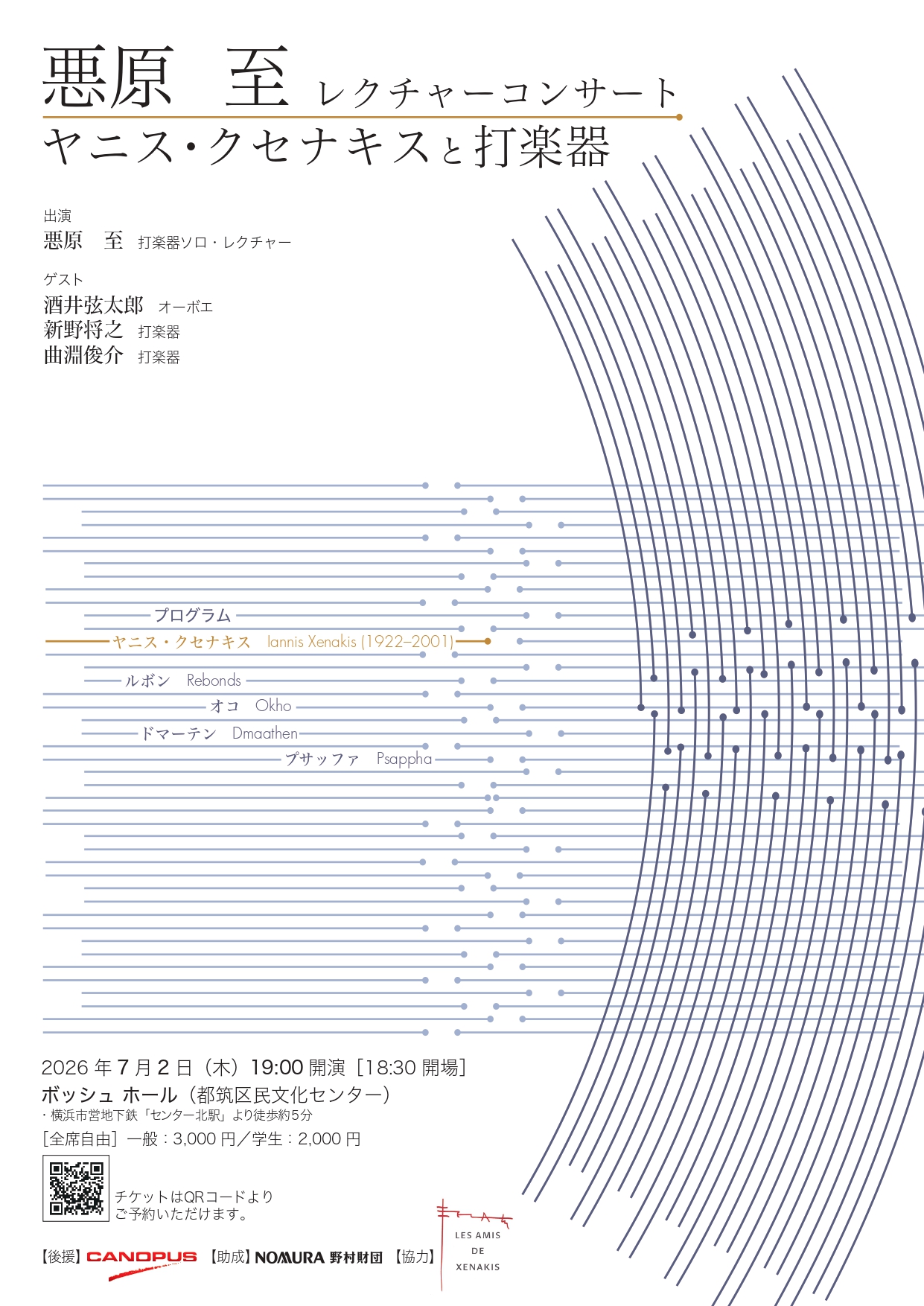 Xenakis Lecture and Percussion Concert in Yokohama, Japan, on July 2, 2026
